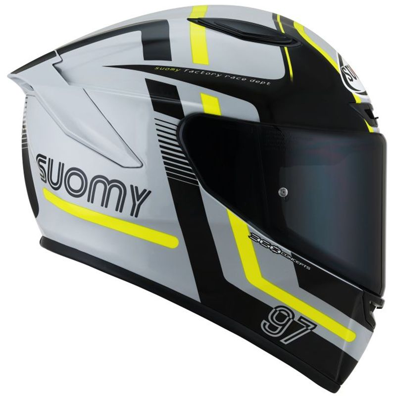 Der Suomy Track-1 Ninety Seven-Helm repräsentiert die neueste Generation von Integralhelmen aus Tri-Composite-Fasern (Carbon, Aramid, Glas) der Marke Suomy .